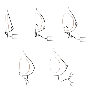 Ich verwende fast ausschließlich sogenannte Expanderprothesen. Diese kombinieren die Eigenschaften eines Expanders mit der einer Prothese und müssen deswegen nicht gewechselt werden. So erspare ich meinen Patientinnen einen zweiten Eingriff in Vollnarkose! Es wird lediglich der Auffüllschlauch, der sich unter der Haut befindet, unter Lokalanästhesie entfernt und die Patientin kann unmittelbar nach dem Eingriff nach Hause gehen. Zuvor wird in regelmäßigen Abständen (alle 1-2 Wochen) die Expanderprothese mit Kochsalz aufgefüllt, bis die gewünschte Größe erreicht ist.